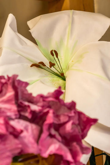 Je réalise des fleurs géantes en tissu, peintes à la main, où poésie, imagination et élégance se rencontrent.